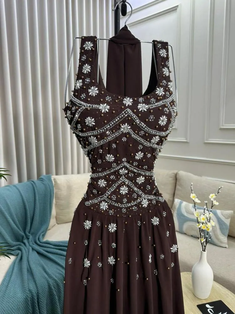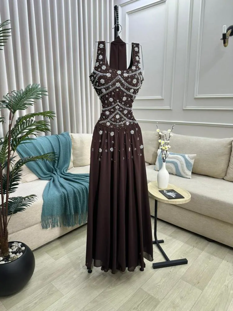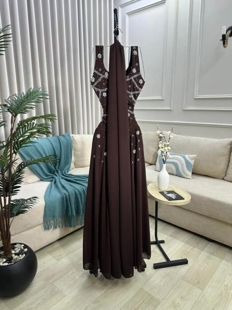 فستان الجورجيت الناعم بتطريز يدوي فاخر